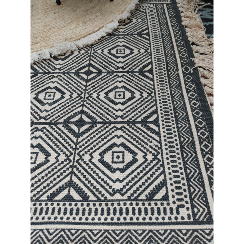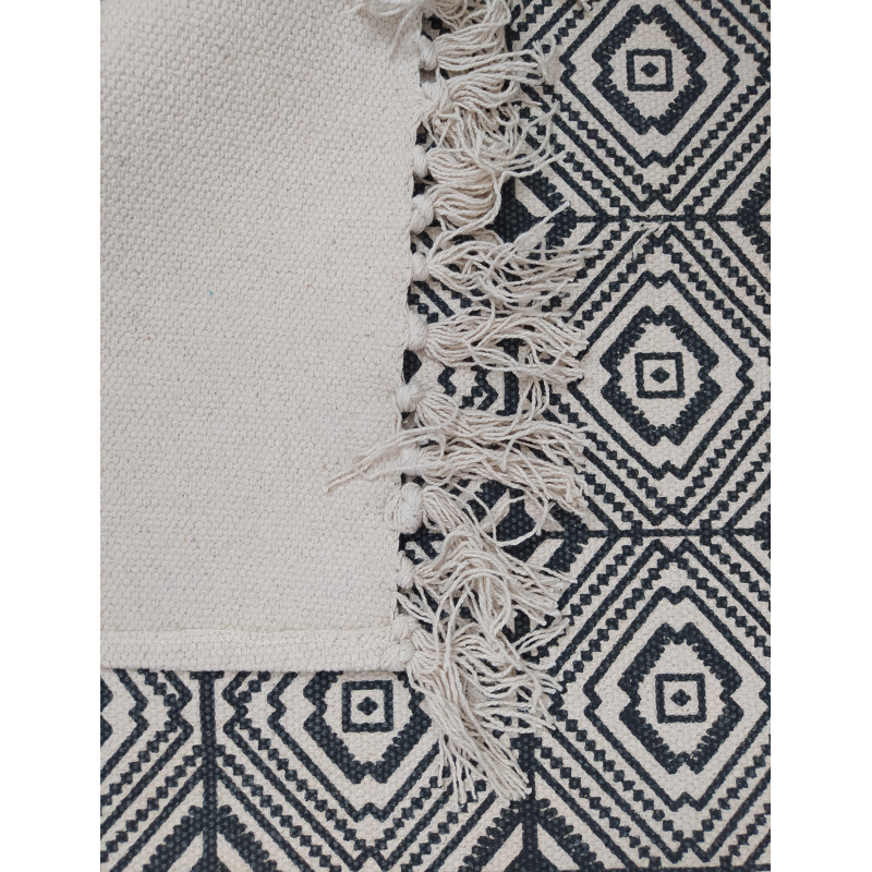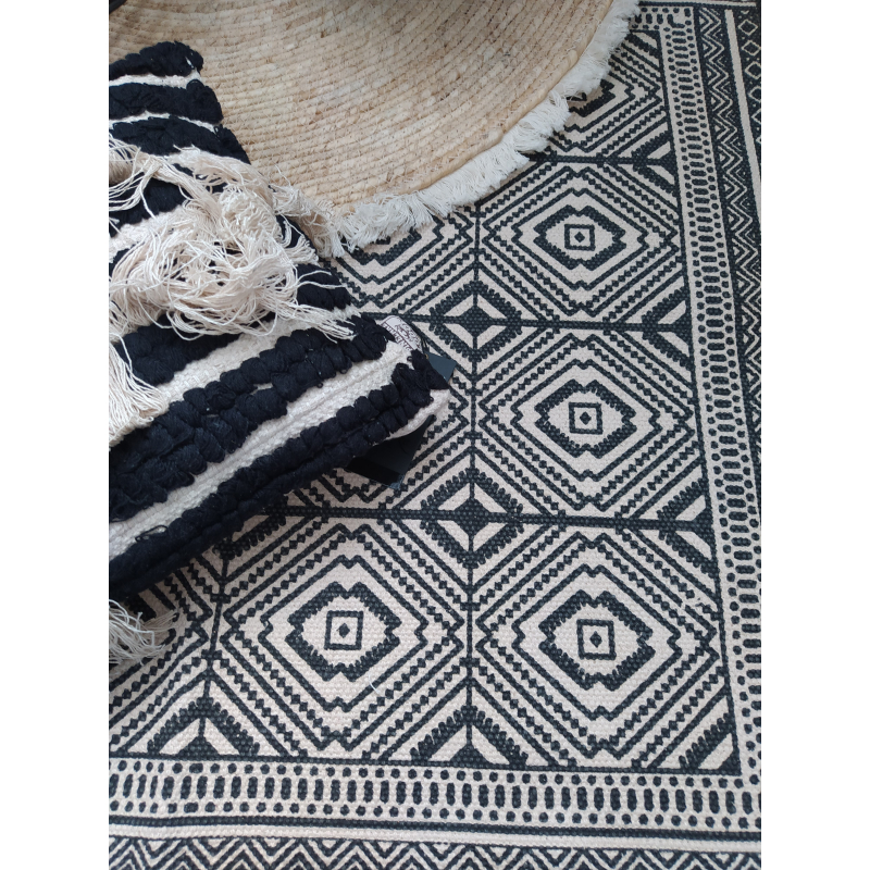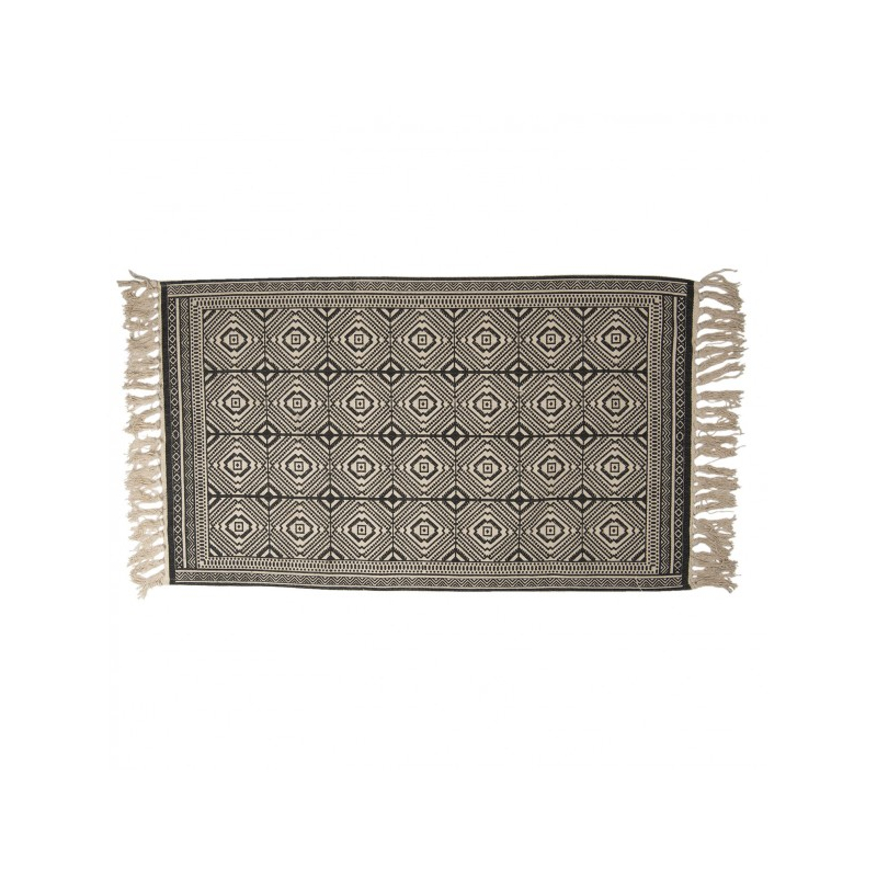 Béžovo-černý koberec s ornamenty a třásněmi - 70*120 cm