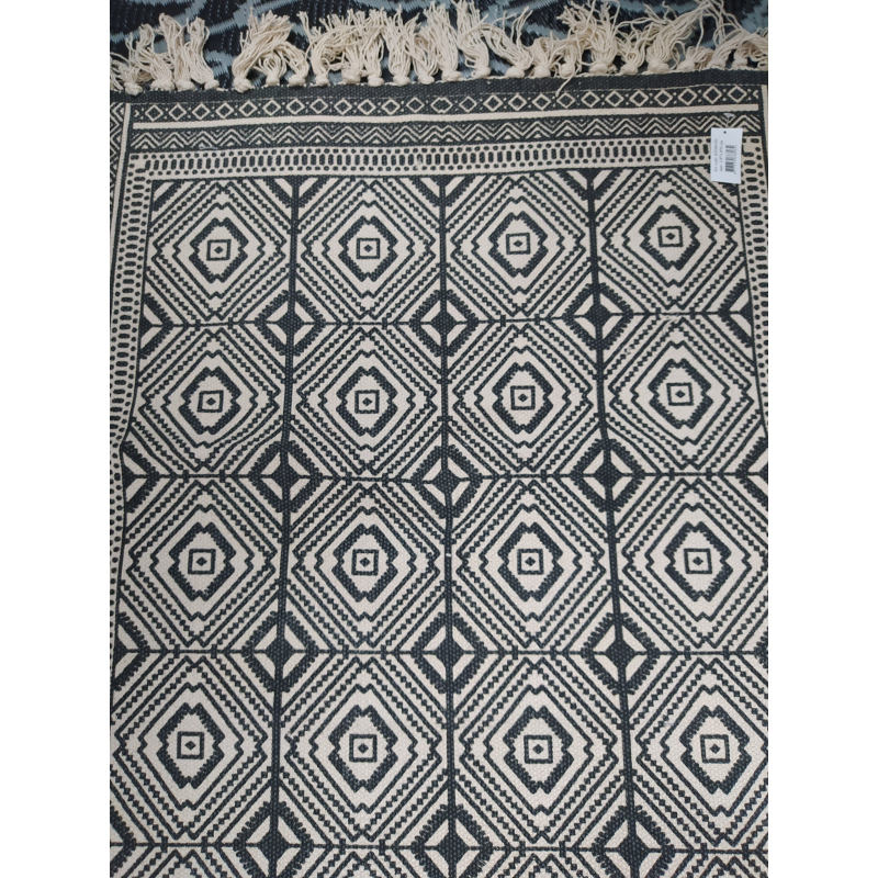 Krémový bavlněný koberec s modrými ornamenty - 70*120 cm