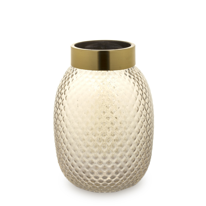 Skleněná váza se zlatým kovovým hrdlem, 30 cm