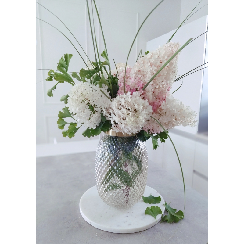 Skleněná váza se zlatým kovovým hrdlem, 24 cm