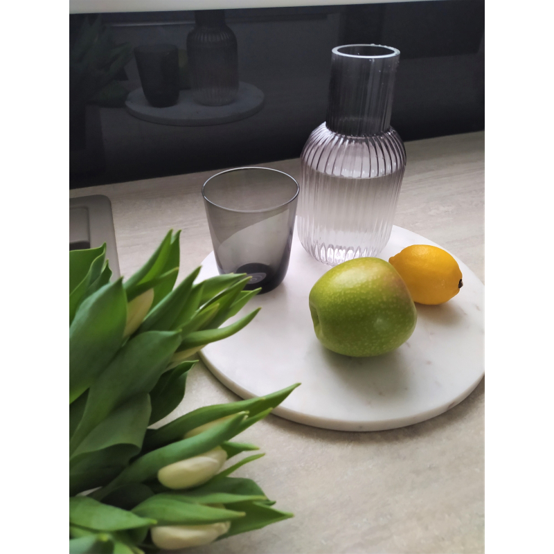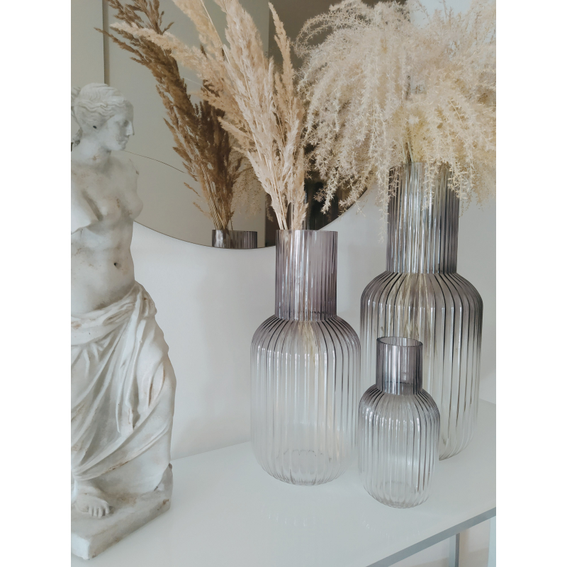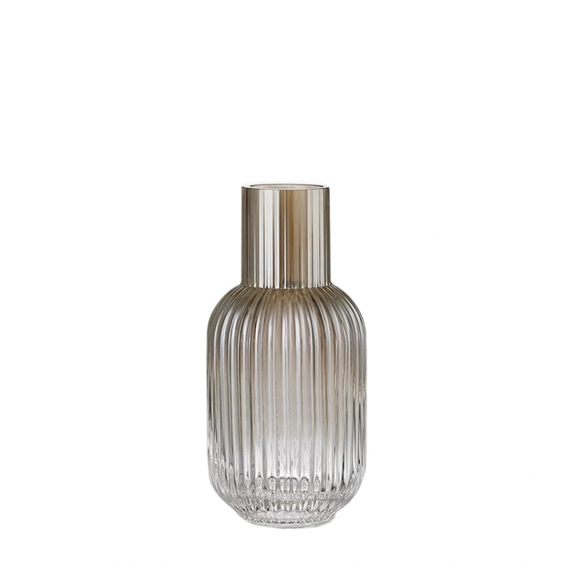 Skleněná váza s rýhovaným reliéfem v moderním a minimalistickém vzhledu. V této velikosti může být použito třeba i jako karafa na vodu :-)