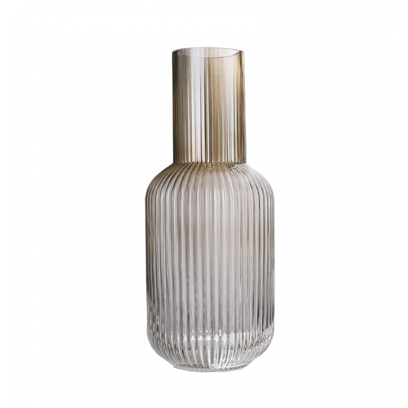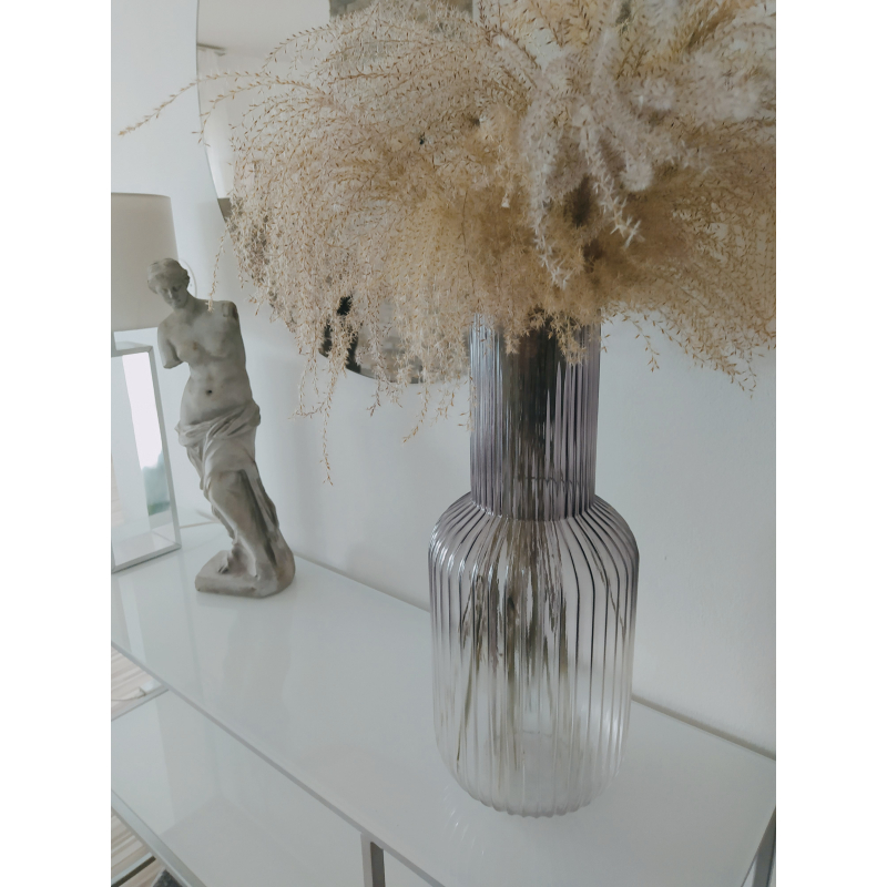 Skleněná váza s rýhovaným reliéfem v moderním a minimalistickém vzhledu.