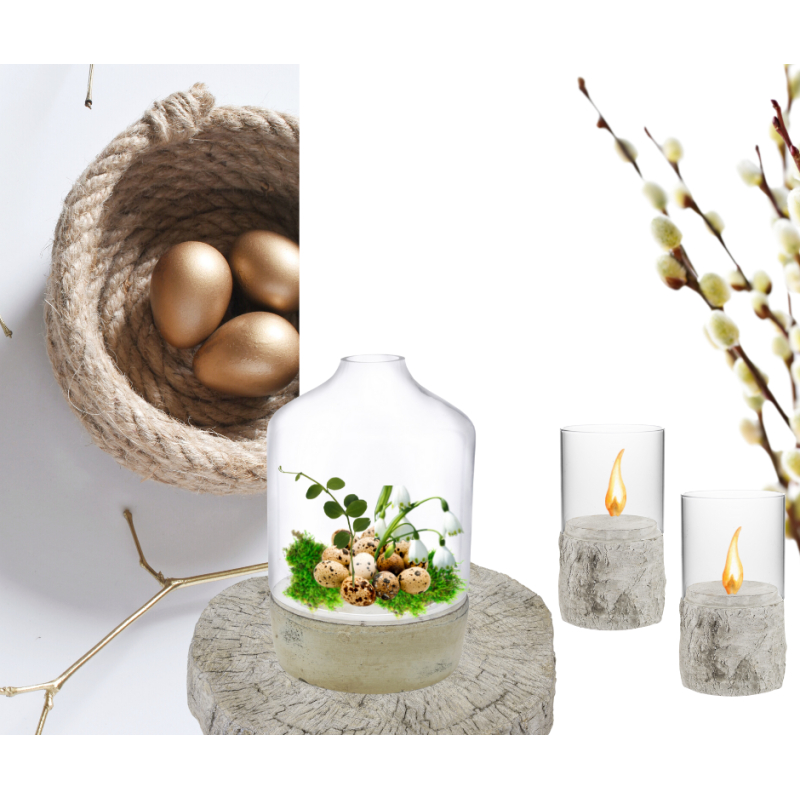 Svícen se skleněným krytem, barva béžovo/šedá