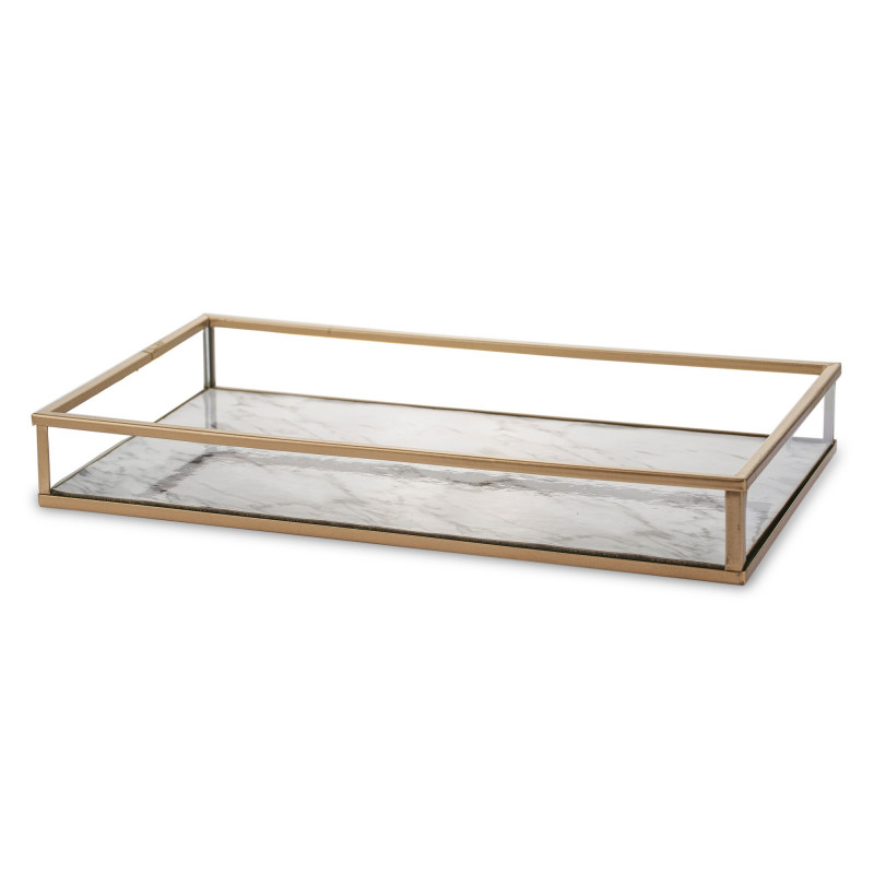 Box skleněný, zlatý s dekorem mramoru, 4x24x14 cm