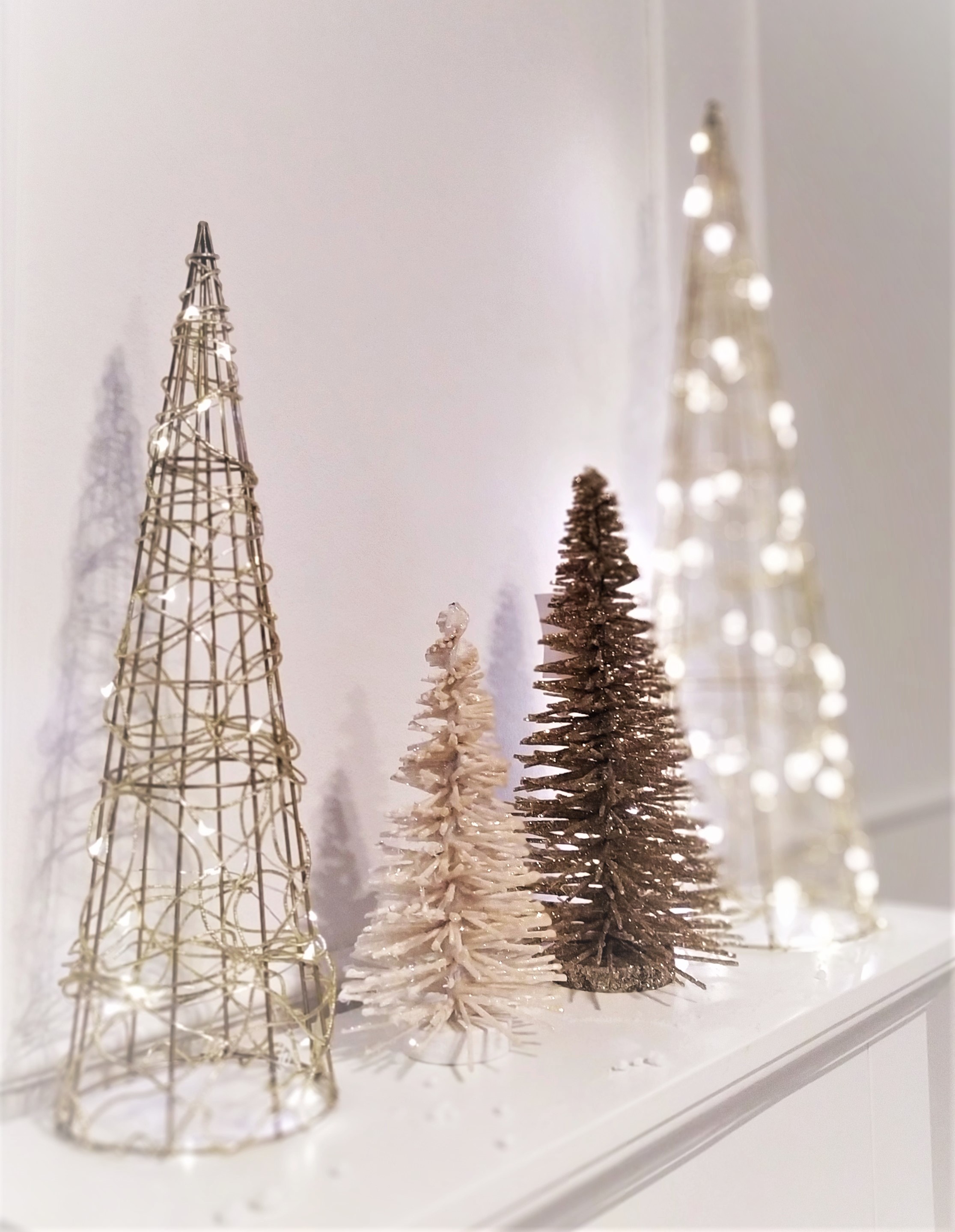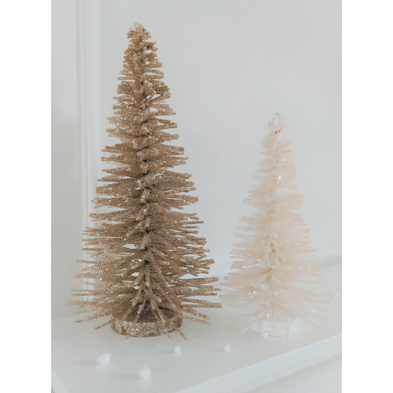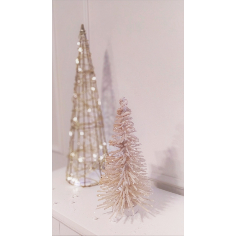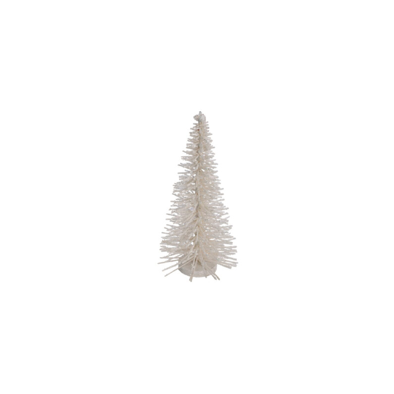 Jednoduchá vánoční a adventní dekorace, která vykouzlí vánoční atmosféru v každém interiéru. Hodí se například pro vytvoření vánoční vesničky za pomocí světelných LED domečků v kombinaci s těmito stromečky. Stromeček je bílý se třpytkami, působí poté barvou smetanovou.